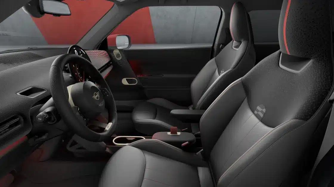 Inspirado en el mundo de la competición y listo para la carretera, el estilo JCW da una imagen decididamente deportiva a tus trayectos diarios. El diseño especial de las partes delantera y trasera pone de manifiesto su carácter deportivo. El contorno de la parrilla y el logo en negro brillante, combinados con el techo en contraste opcional en Chili Red, refuerzan la impresión general de potencia. Te enamorarás de él en cuando lo veas. En el interior, los asientos deportivos tapizados en tejido y Vescin harán que te sientas como en un coche de carreras. Los colores rojo y negro de JCW se extienden al salpicadero y las paneles de las puertas. Y puedes tomar las curvas como un profesional con el volante deportivo JCW en Vescin negro perforado, embellecido con detalles en Vibrant Silver y costuras rojas.