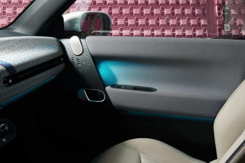 El salpicadero y los reposabrazos en las puertas tienen un tejido de gran calidad que está hecho con hilo de poliéster reciclado. Sometemos este material a un proceso que convierte más del 90% de las fibras de poliéster reciclado en un tejido liso 2D que aplicamos a partes del salpicadero y los paneles de las puertas. El proceso consume alrededor de un 98% menos agua que el algodón y reduce las emisiones de CO2 en torno al 80% con respecto a procesos convencionales.