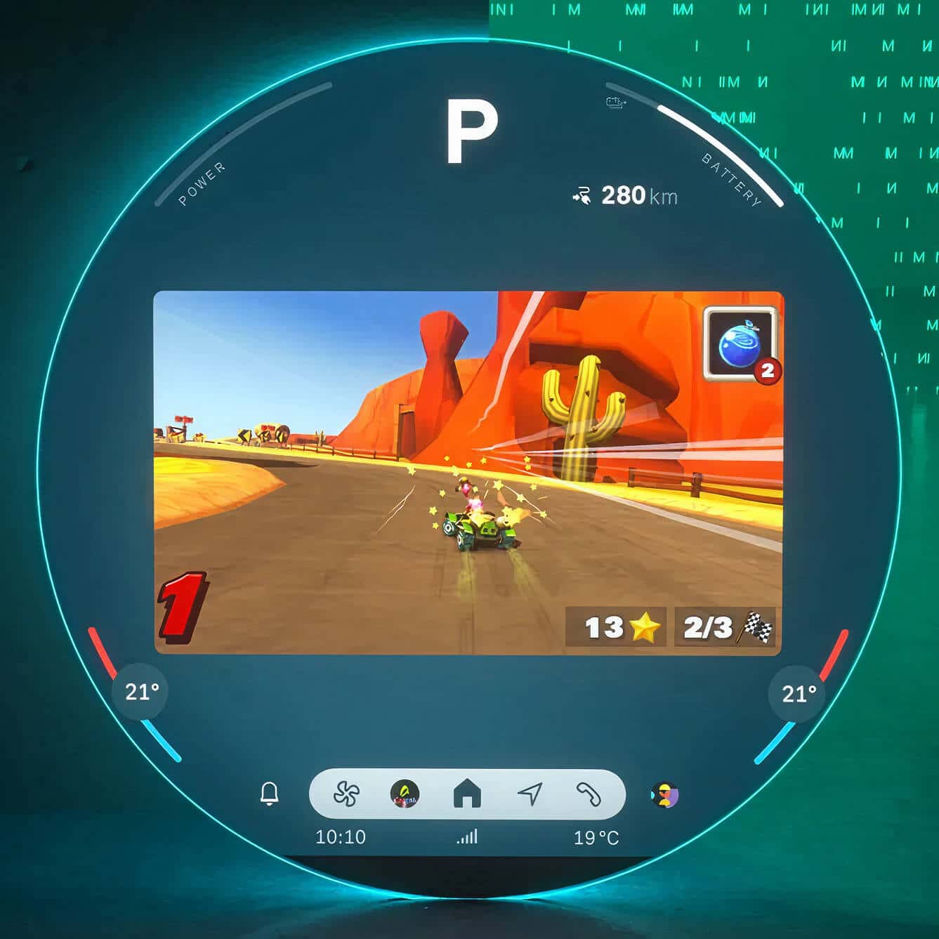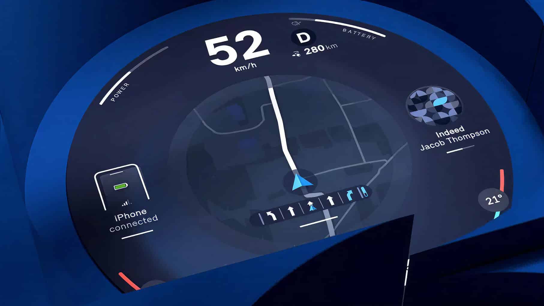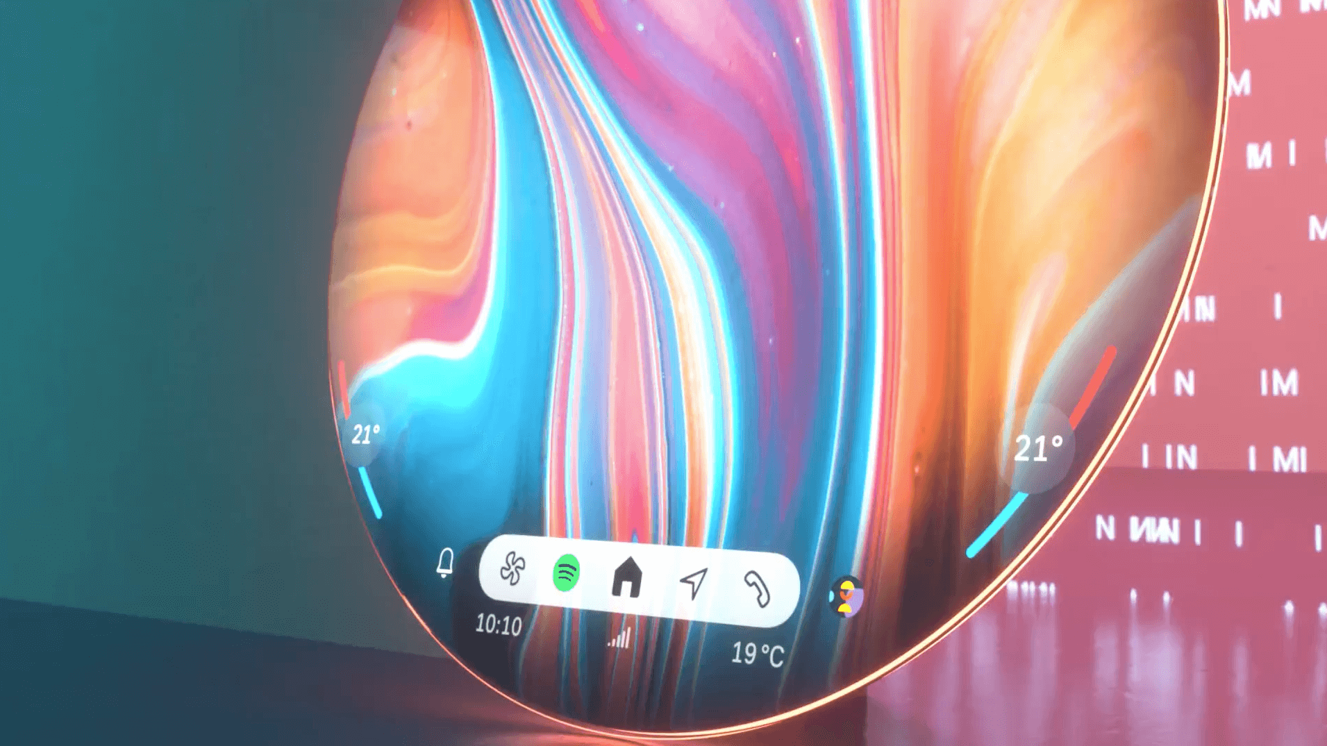 El corazón y centro de atención del salpicadero es una nueva pantalla central extraordinariamente fina. Utiliza la más avanzada tecnología OLED, mide 24 cm de diámetro y tiene un vidrio de alta calidad que le confiere una peculiar imagen minimalista. Funciona como cuadro de instrumentos, pero también como centro de asistencia e infoentretenimiento. Además, la pantalla OLED circular es la primera del mundo en su género.